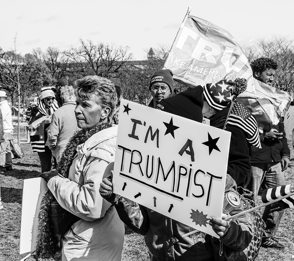 Two women gathered at a rally in support of former President Donald Trump. “2017.03.04 Pro-Trump Rallies Washington, DC USA 00401” by tedeytan is licensed under CC BY-SA 2.0